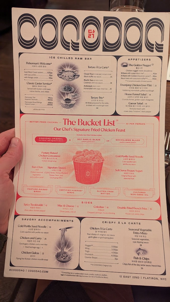 Welcome to COQODAQ, a vibrant culinary gem nestled in the heart of New York City, specifically at 12 E 22nd St. This remarkable establishment serves as the sister restaurant to the acclaimed Cote, promising a delightful fusion of Korean fried chicken with a touch of flair.